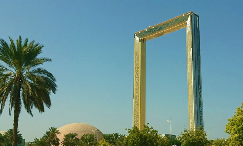 - Dubai Frame stands tall in Zabeel park with views of Emirates Towers and Burj Khalifa on one side, and Deira, Umm Harare and Karama from the other