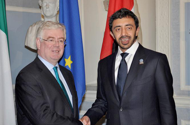 UAE leaders met Irish foreign minister Charles Flanagan in the capital on Monday to discuss diplomacy and trade.